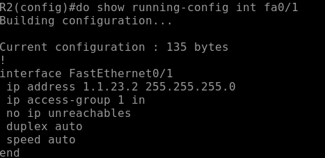 R1, R2가 내부망이고 R2의 fa0/1에서 들어오는 쪽에 ACL을 걸어준다.
