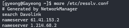 • /etc/resolv.conf : DNS한테 물어볼 때 IP 주소 맵핑하는 역할