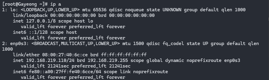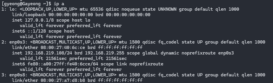 ip a 하면 나오는 아래 enp0s3, enp0s8을 하나의 가상 인터페이스 합칠 예정