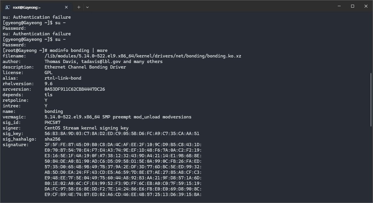 modinfo bonding | more 해서 이미 설치되어 있는지 검사
