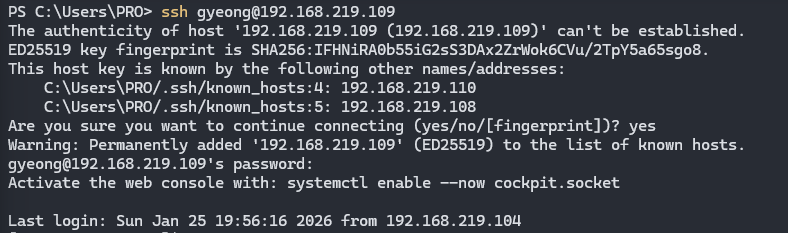 ssh 접속도 무사히 되는 것 확인.