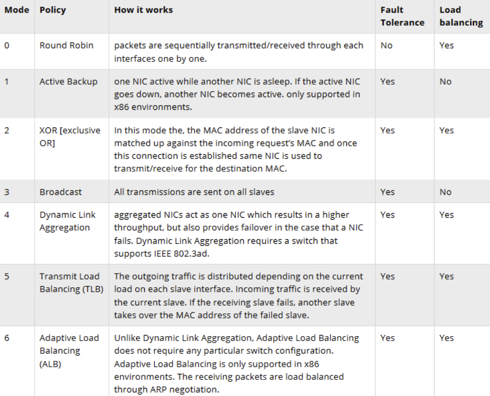 BONDING_OPTS=”mode=5 miimon=100”