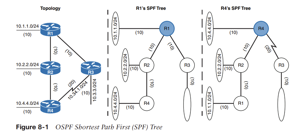 - SPT는 OSPF 도메인 내의 모든 목적지를 가지고 있음.