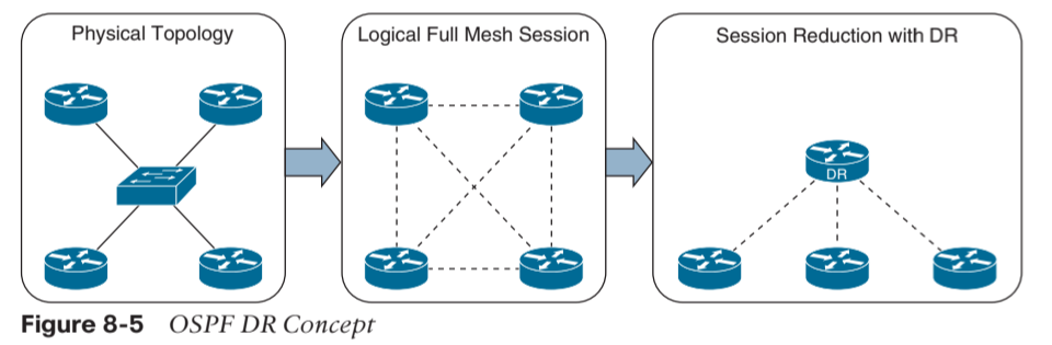 이를 해결하기 위한 것이 DR(Designated Router)로, 모든 라우터는 DR과만 full ad 관계를 맺음.