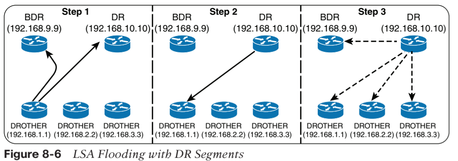 - DR이 해당 LSA를 224.0.0.5 주소를 사용해 모든 OSPF 라우터에게 플러딩
